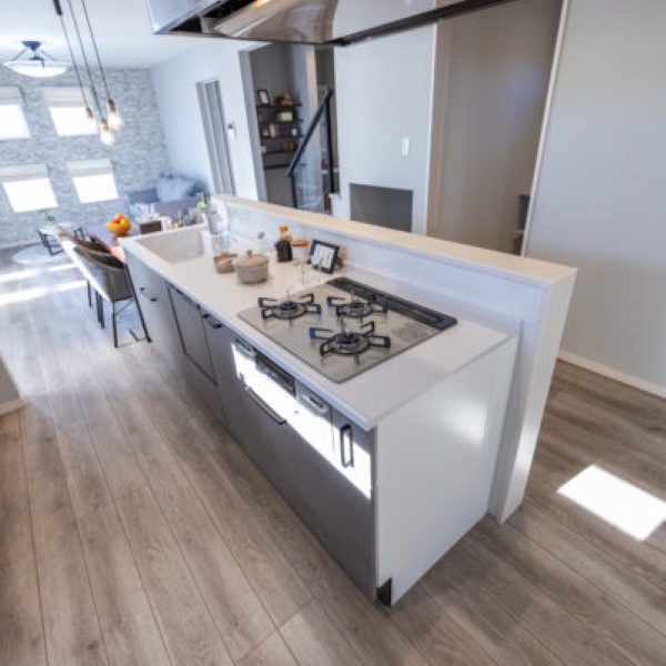 キッチンの設備や照明なども含めて見せるインテリアとして楽しめるところもポイントです。
