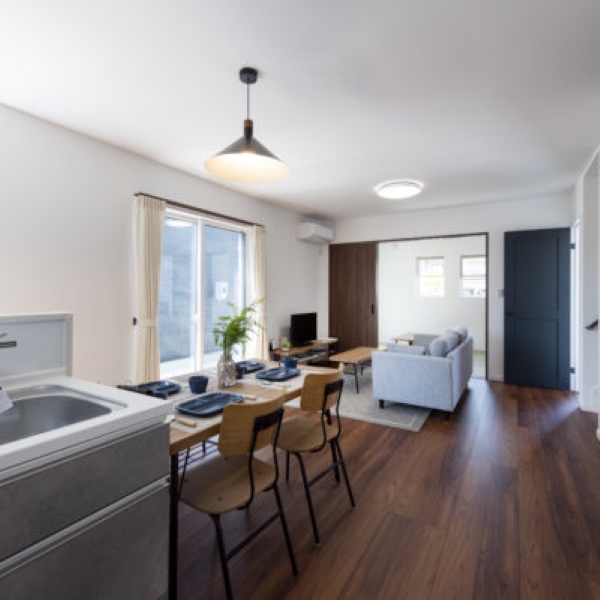 横並びダイニング・キッチンは、横長LDKのとの相性がよく導線がリビングへと繋がり間取りもシンプルになります。
