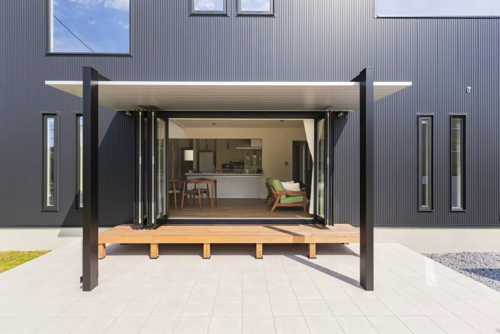 アウトドアリビングは、建物のデザイン性を高め、自然と調和した開放的な暮らしを実現できます。