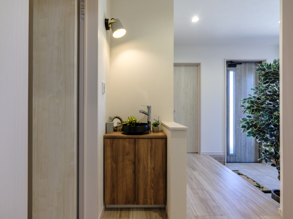 例えば、洗面所のみ造作で、あとはうまく既製品も活用しながら家づくりを進めると、建築費用を抑えられます。