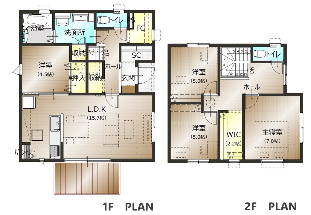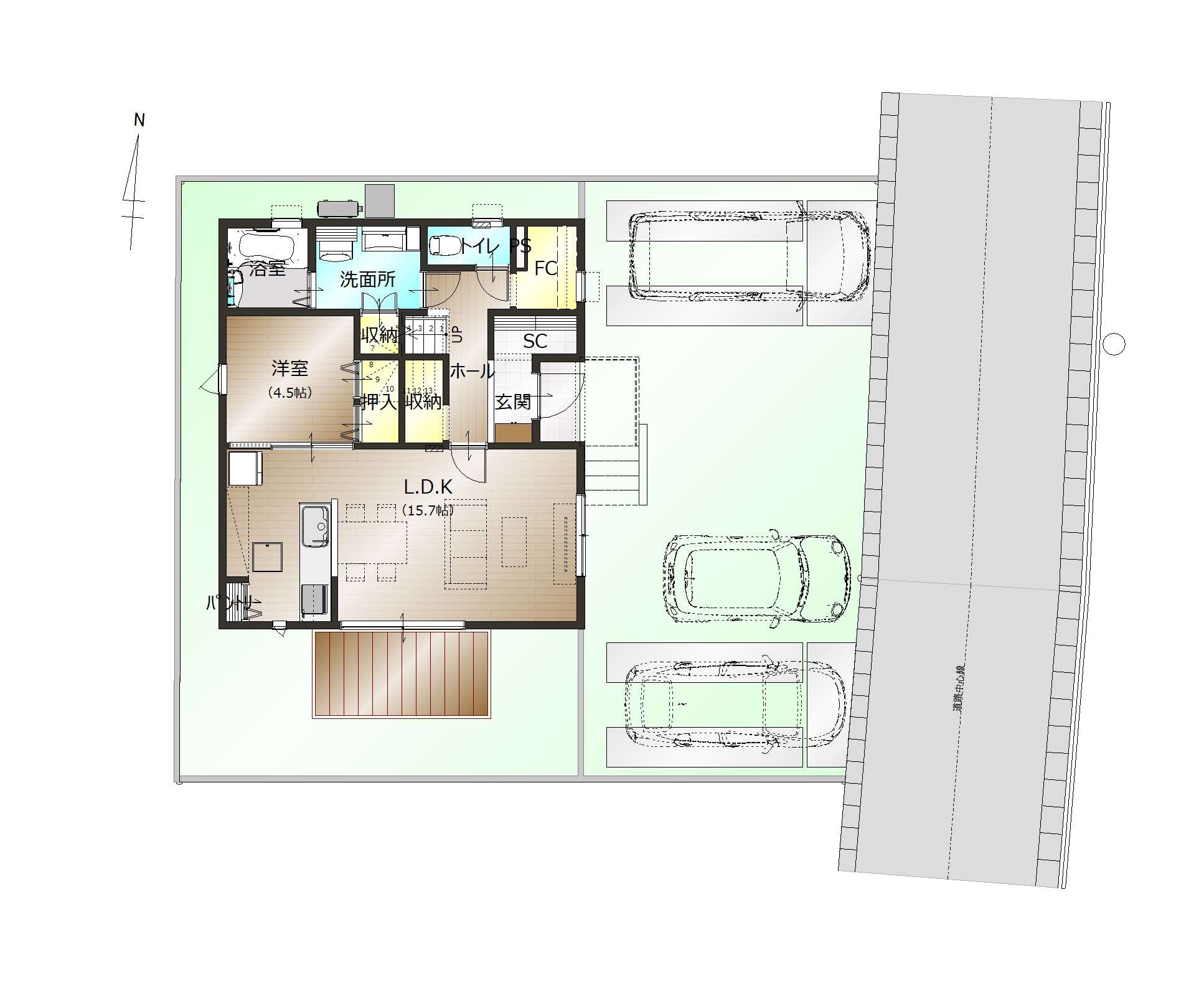 外構工事まで完了してお引渡しいたします。広い南側のお庭にはウッドデッキがあるのでBBQやビニールプールも楽しめます。倉庫やガレージなども検討できる敷地の広さ。実際に子育て中のママが経験した『こんなとき、ここにあれが欲しい』を叶えた、忙しいママも嬉しいラク家事プラン。階段下収納・土間収納・押入・WICなど収納が多いのも特徴です。