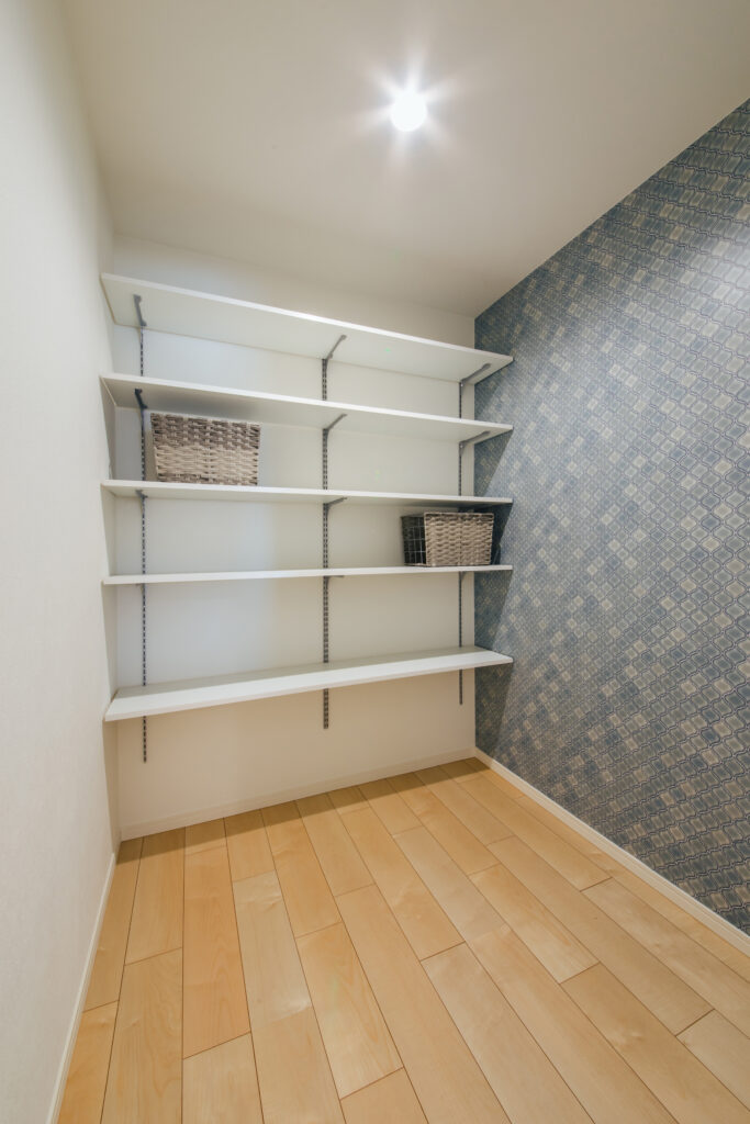 食品のストックなどを置けるパントリー。たっぷり収納できる広さに。