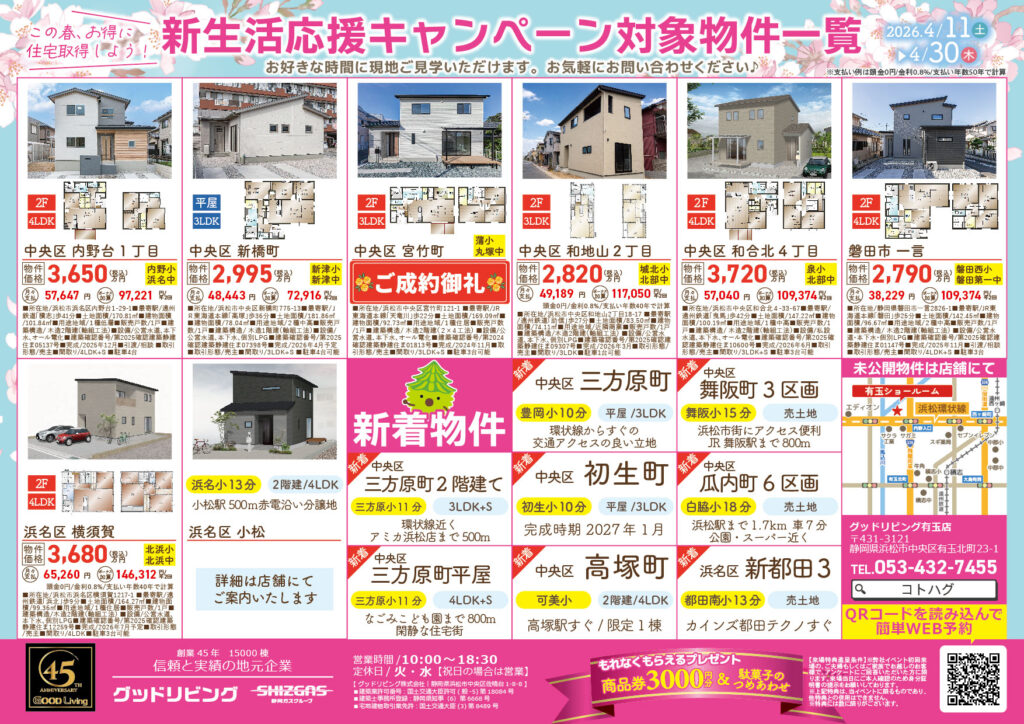 【ご予約受付中】 2026.4/11㈯~30㈭ 【春の新生活応援🌸キャンペーン】 分譲住宅探すなら今