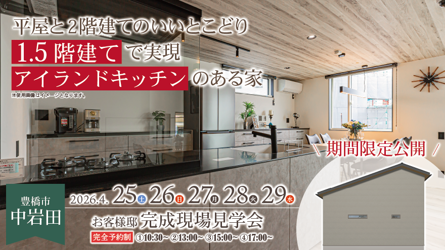 【豊橋市中岩田】\8日間限定/4月10日~12日・25日~29日 |1.5階建ての家🏡アイランドキッチンのある家👀完成内覧会✨