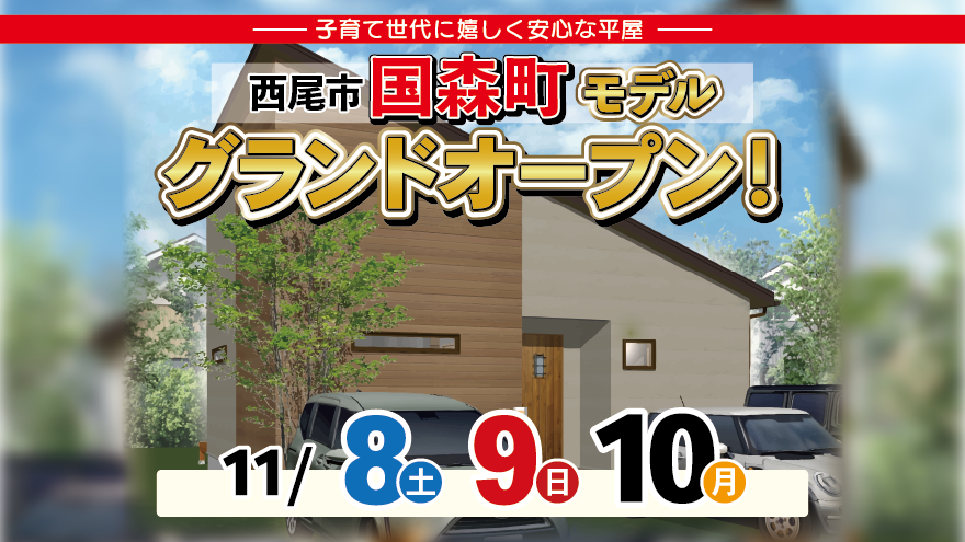 【西尾市国森町】11月8日-10日|新 平屋モデルグランドオープン🎊