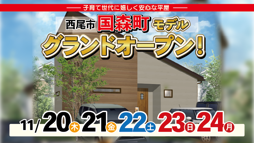 【西尾市国森町】11月20日-24日|平屋モデルグランドオープン🎊