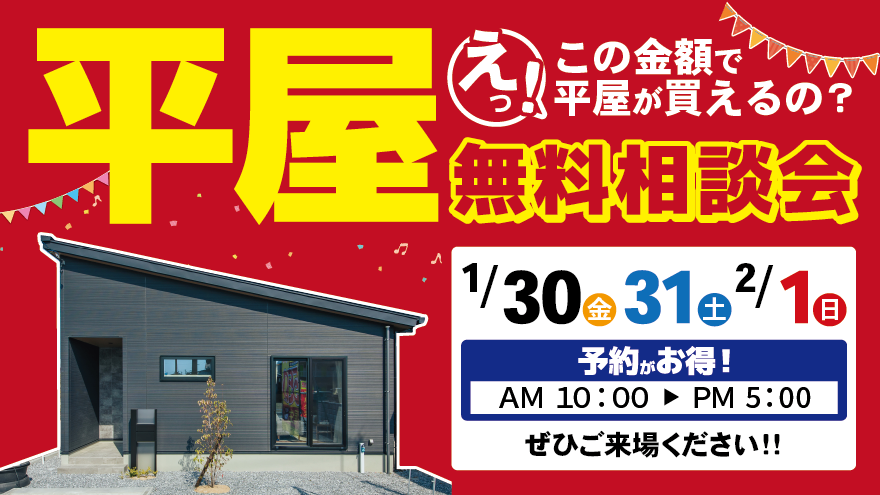 【磐田店】1月30日-2月1日|シンプルで無駄なく暮らす“平屋”相談会