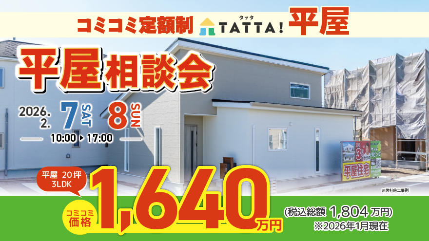 【二宮店】2月7日-8日|シンプルで無駄なく暮らす“平屋”相談会