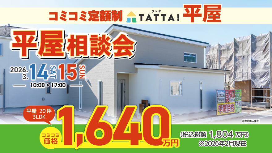 【二宮店】2月14日-15日|シンプルで無駄なく暮らす“平屋”相談会