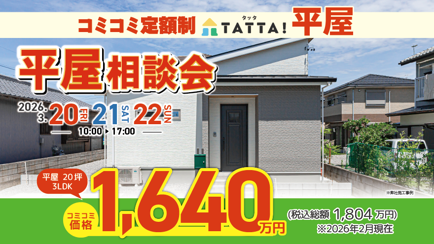 【二宮店】2月7日-8日|シンプルで無駄なく暮らす“平屋”相談会