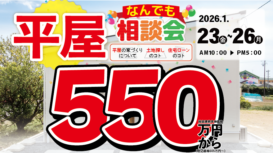 【掛川店】1月23日-26日|シンプルで無駄なく暮らす“平屋”相談会