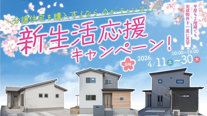 【事前予約可】 2026.4/11㈯~30㈭ 【春の新生活応援🌸キャンペーン】 分譲住宅探すなら今