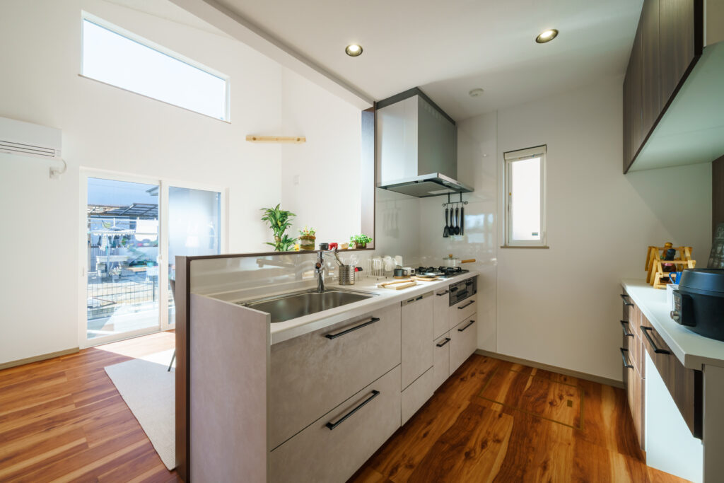 LDKと一体感のあるキッチンは、家事をしながらダイニングもリビングも見渡せる子育て世代に嬉しい配置✿