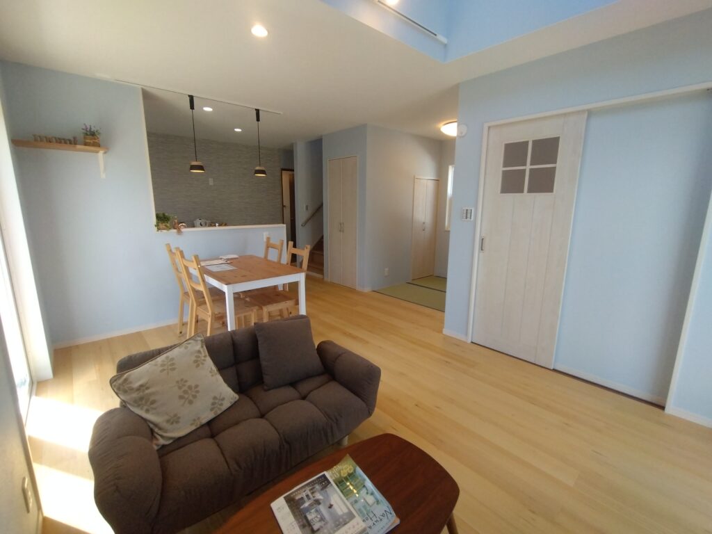 床材に無垢のモミの木を使用していて温かみのあるリビングになりました。